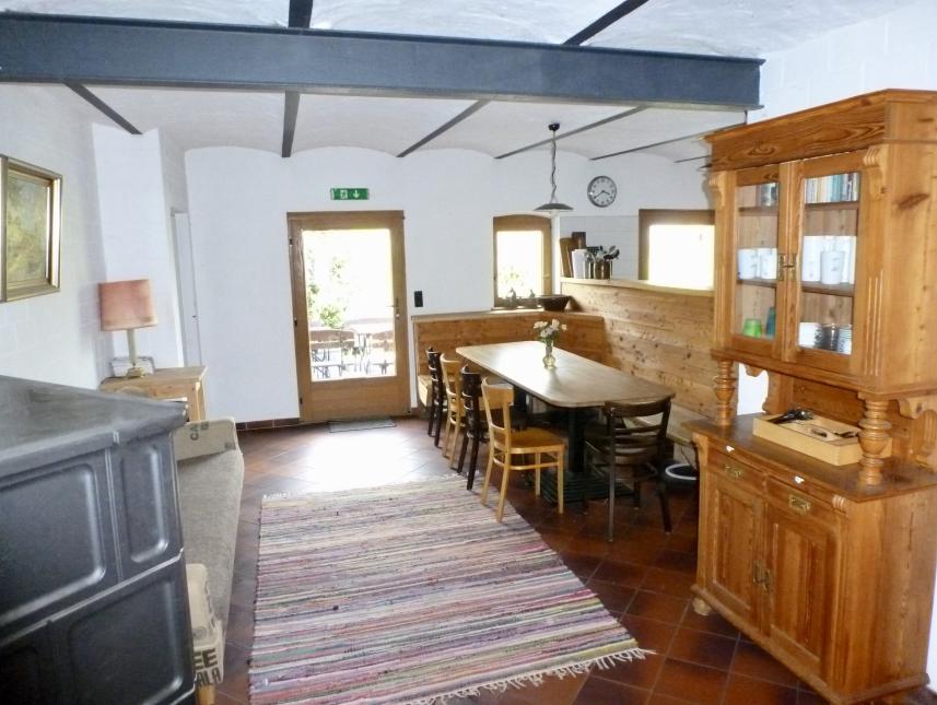 Es gibt 6 unterschiedliche Aufenthalts- und Arbeitsräume. Fast alle haben einen schönen Kachelkaminofen mit Sichtfenster für eine anspruchsvolle- und gemütliche Atmosphäre.