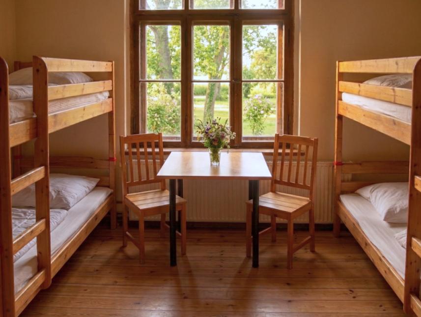 Landheim: 9 Mehrbettzimmer mit zentralen Dusch- und Waschräumen.