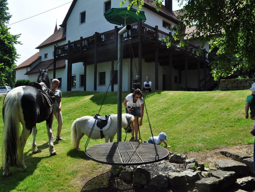 Unser Landhotel ist ein idealer Standort für jede Art von Zusammenkunft. Es liegt am Ortsrand von Kirchheim am Ries, neben dem dazu gehörigen Bauernhof, umgeben von Wald und Wiesen. Mit Garten, Liegewiese, Mehrzweckspielfeld, Sechserschaukel,