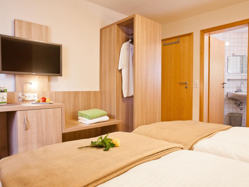 4 EZ, 7 DZ (auch als EZ belegbar), 8 Zweibettzimmer (auch als EZ belegbar), 2 Dreibettzimmer, alle Zimmer mit Dusche und WC, TV, Schreibtisch und Haarföhn.