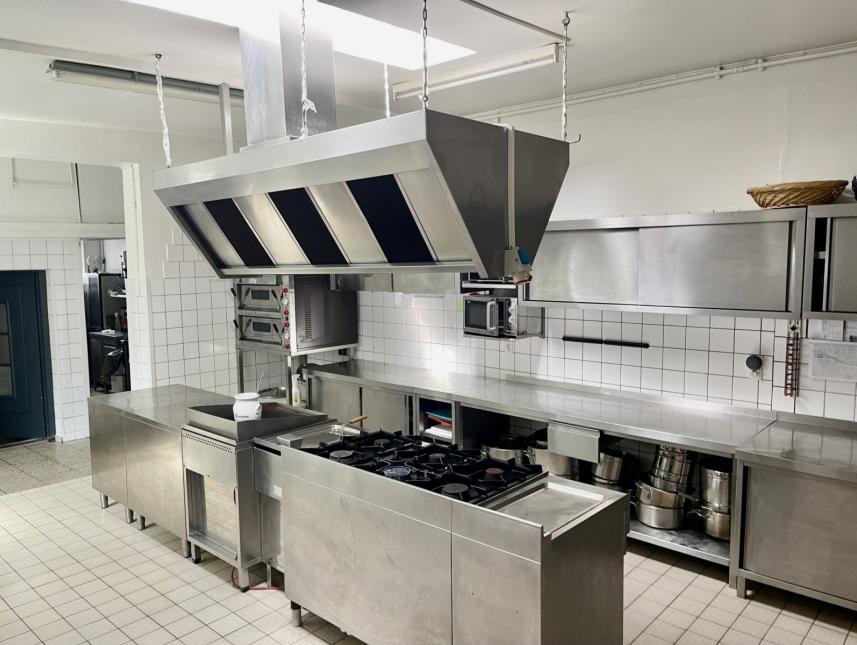 Gosse Gastronomie-Küche , voll ausgestattet für ca, 120 Personen ( Geschirr, Tische, etc….Kühlräume)