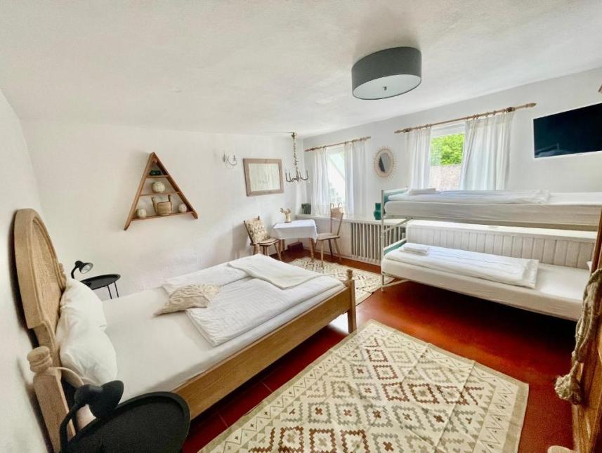 Die Zimmer im Gruppenhaus sind mit Stock- und Einzelbetten ausgestattet. Alles wurde bewusst robust gehalten, so dass auch getobt und gefeiert werden darf. Im Garten gibt es eine Terrasse mit Tisch und Stühlen, eine Grillstelle, ein kleiner Pavillon sowie Liegestühle. Ein Fußballplatz ist nur wenige Minuten entfernt. Der Rad-Wanderweg und die Donau sind in unmittelbare Nähe.