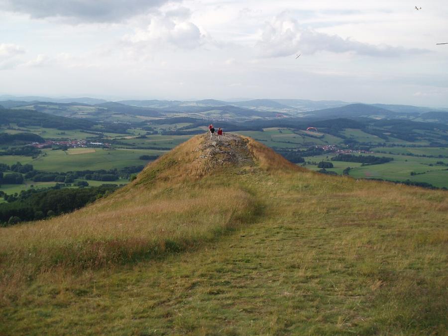 Direkt oberhalb des Ortes beginnen offene Hochflächen mit weitem Blick Richtung Fuldaer Land. Diese Bereiche liegen abseits der bekannten Wasserkuppe-Routen und eignen sich besonders für ruhige Spaziergänge, Naturbeobachtung oder kurze Gruppenrunden.