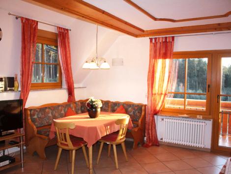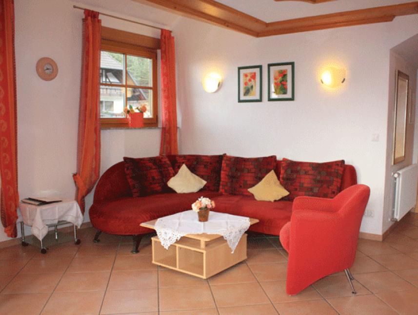 Die Wohnung hat einen großen gemütlichen Wohnraum mit Couchgarnitur und großer Essgruppe an der alle Personen bequem Platz finden. Die Couch ist auf 2x2m für zwei Personen ausklappbar.