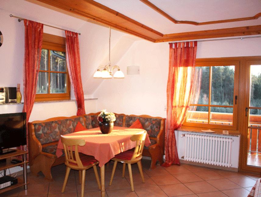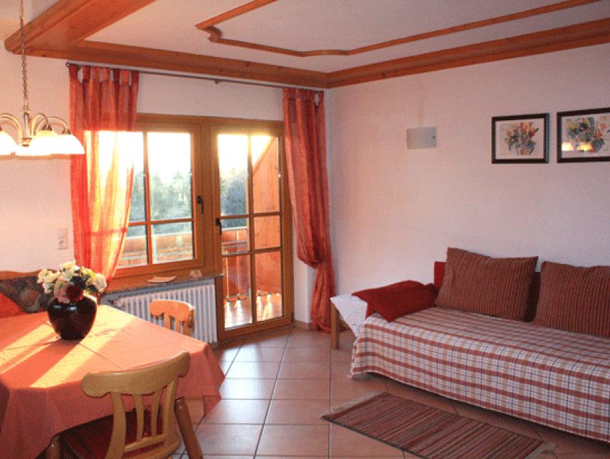 Die Wohnung besteht aus einem Wohn- Schlafraum mit Doppelbett und Couchgarnitur (für 3. Person ausklappbar), einer Essecke, separater Küche mit E-Geräten (E-Herd mit Backofen, Toaster, Kaffeemaschine, Handrührgerät, Elektroquirl, Mikrowelle), Dusche/WC sowie einem schönen Balkon, mit Balkonmöbeln ausgestattet. Art der Versorgung: