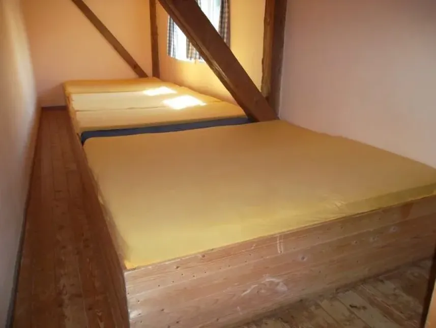 Es stehen 2 große Heu-Schlafräume für jeweils 15 Personen, 1 einfaches Matratzenlager für 8 Personen und 1 Vierbettzimmer und 1 Zweibettzimmer zur Verfügung.