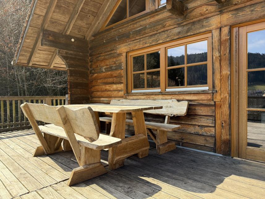 Das Blockhaus „Flößerhaus“ bietet auf 110 m² ein naturnahes Wohnerlebnis mit offenem Raumkonzept, behaglicher Wärme durch den Grundofen und einer voll ausgestatteten Küche. Die große Terrasse lädt zum Entspannen ein und eröffnet einen traumhaften Blick über Schenkenzell.