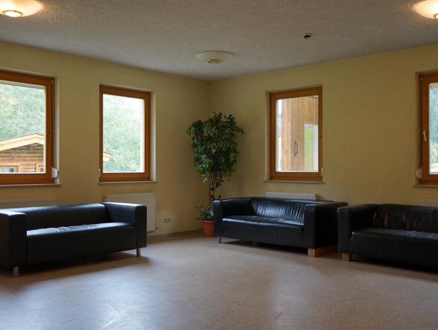 mehrere gemütliche und multifunktionelle Aufenthaltsräume, Spieleraum mit Tischkicker und Tischtennisplatte, Mehrzweckraum mit Bühne und Musikanlage