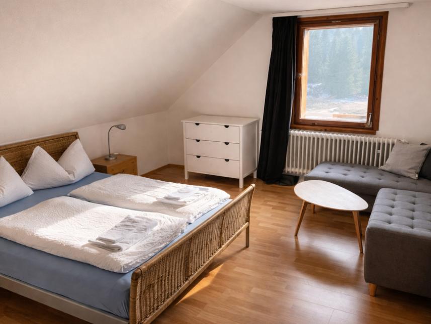 Das Sporthostel am Schluchsee bietet 15 Einzel-, Doppel- und Mehrbettzimmer mit teilweise privaten sowie gemeinschaftlichen Bädern. Zusätzlich stehen zwei Ferienwohnungen mit privater Küche zur Verfügung, die ab einer Gruppengröße von 12 Personen exklusiv pro Etage gebucht werden können. Für Familien sind Kinderbetten und Hochstühle vorhanden, um auch den jüngsten Gästen einen komfortablen Aufenthalt zu gewährleisten.