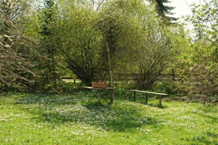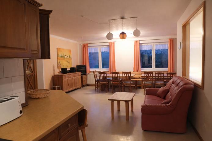 Haus am Waldrand gelegen, uriges und rustikales Ambiente, Alleinlage, große Wiese und weitläufige Außenanlagen, Alleinbelegung, Cateringangebote, Grillplatz, Spielplatz, Feuerstelle, Volleyballfeld, Fußballplatz, kostenlose Parkmöglichkeiten, Kaminhaus