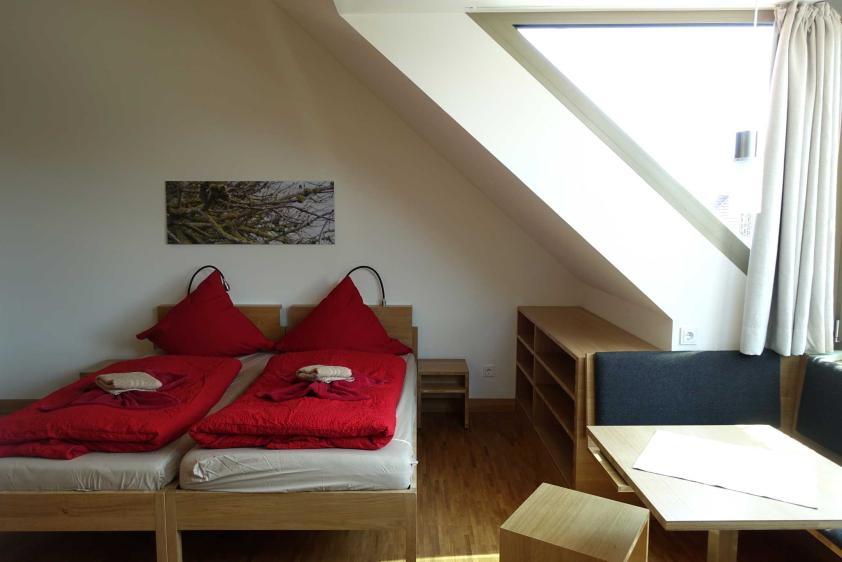 Die JuBi steht Gruppen als Tagungs- und Freizeithaus offen und bietet ein eigenes Bildungsprogramm an. Das Haus hat 26 helle, gemütliche Zwei- und Dreibettzimmer, die meisten mit D/WC und Zusatzbett. 2 Räume sind für Allergiker, 3 Räume sind für Rollstuhlfahrer geeignet.