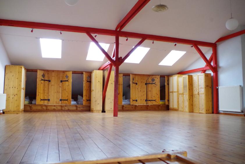 Großes Gelände am Waldrand, bestehend aus einem Haupthaus mit 3 Flügeln, einem Blockhaus, 14 Reetdachhütten sowie einem Zeltplatz und Naturschwimmbad und viele Sportmöglichkeiten. Zum Haupthaus gehört ein Neubau (Westflügel) mit 26 Betten und eigenen Bädern.