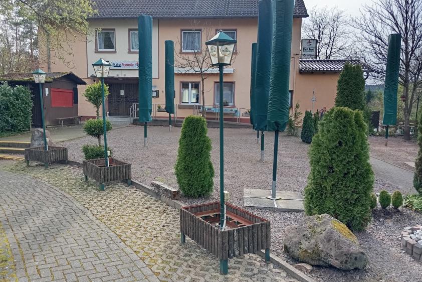 Spielplatz, Grillplatz, Lagerfeuerplatz, überdachter Freisitz sowie Boule-Bahn
