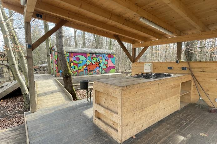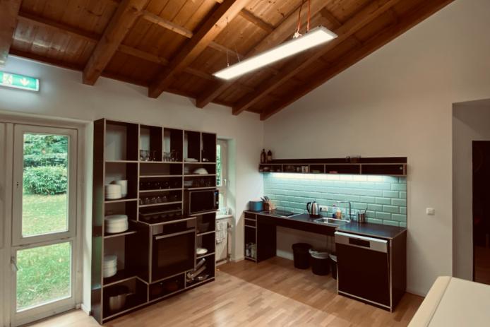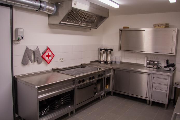 Die Selbstversorgerküche bietet ausreichen Möglichkeiten um eine Gruppenverpflegung herzustellen.
