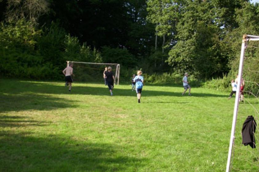 Spielwiese, Grillplatz, Fußballfeld, Volleyballplatz, Tischtennis, Wandern, Wassersport, Freibad nebenan, eigener Steinbackofen