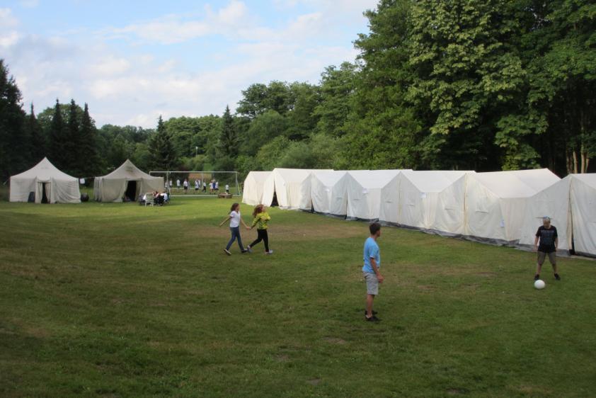 Nah am Lopausee liegt in lieblicher und schöner Landschaft unser Zeltplatz. 500 m weiter gibt es einen Bolzplatz, ein beheiztes Waldbad und einen Spielplatz mit Basketballkörben.