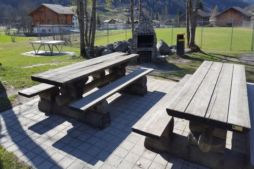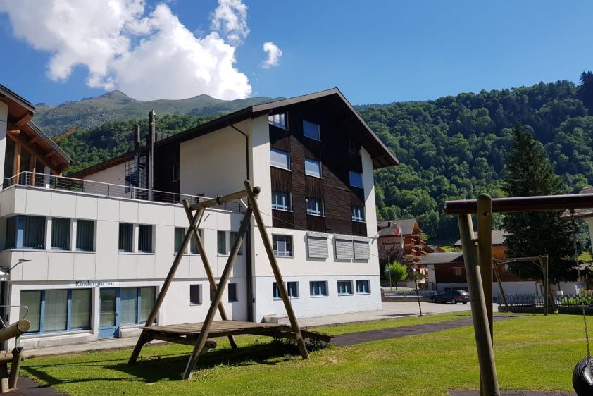 Gruppenhaus im Zentrum von Fieschertal, Platz mit Spielgeräten, Grillplatz im Freien mit Tischen und Bänken, Spielplatz (1000 m²), Hartplatz 400 m², Terrasse, Dachraum 100 m² mit 1 Tischtennis-Tisch und 1 Tischfussball, gebührenfreie Parkplätze.