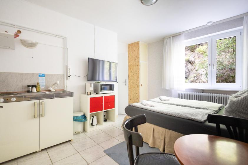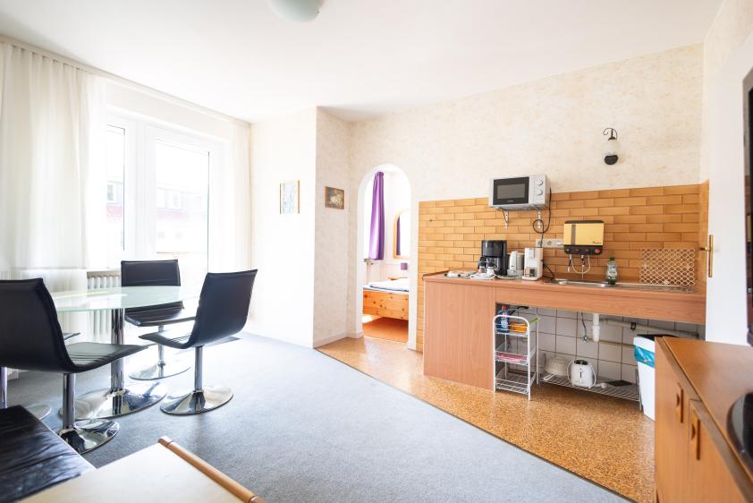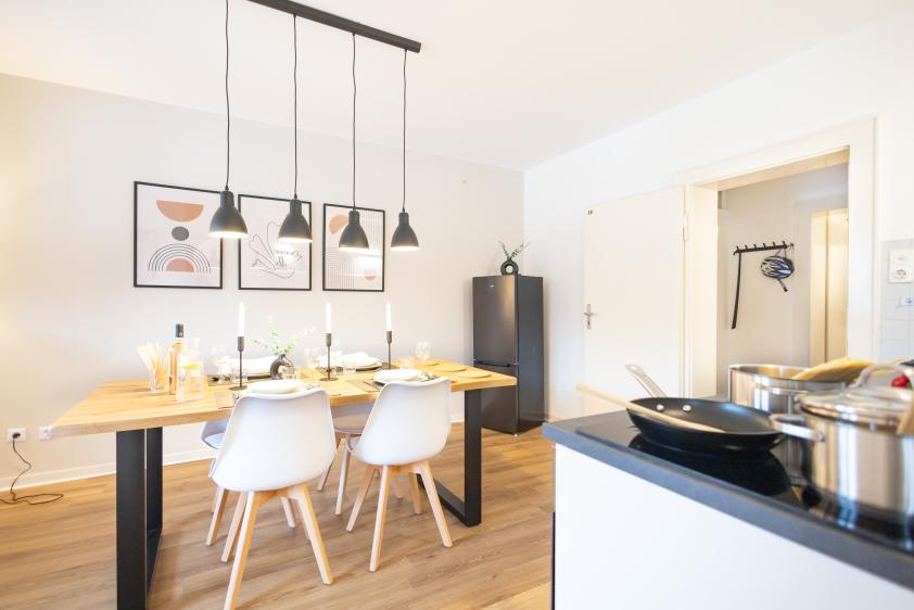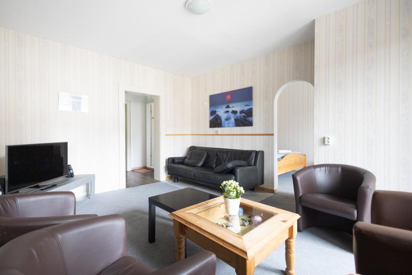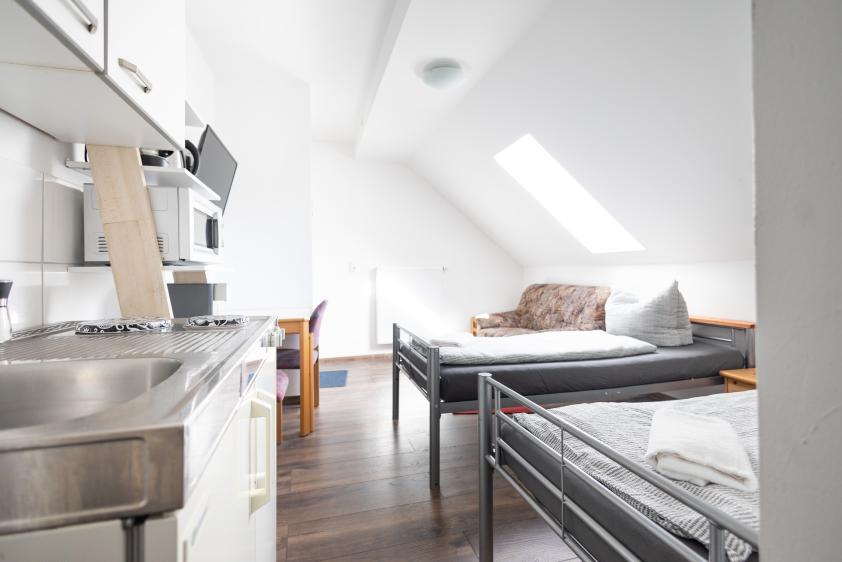 Es stehen 13 separate Wohnungen für bis zu 54 Personen zur Verfügung. Die Wohnungen im Lieblingsquartier sind jeweils individuell und komfortabel ausgestattet und bieten Platz für 2-6 Personen. 2 Gemeinschaftsräume, eine große Terrasse und ein Garten stehen zur Verfügung.