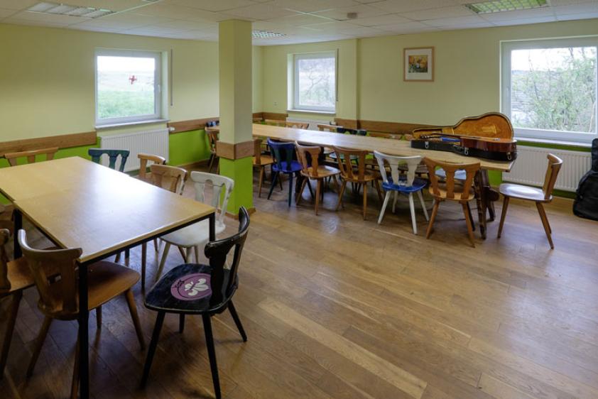 Begegnungszentrum mit Gruppenhaus für 12 Personen mit Wasch- u. Schlafräumen, Küche sowie zwei Gruppenräumen. Direkt angrenzender Zeltplatz (50 x 60m) für Gruppen bis 50 Personen. Auf dem Platz befinden sich 3 Terrassen für den Aufbau der Zelte. Getrennte Vermietung möglich.
