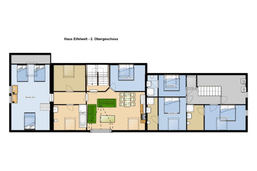 Das HausAcht bietet für Kinder- und Jugendgr., Arbeitskreise und "Großfamilien" vielfältige Nutzungsmöglichkeiten. Neben der großen Küche (wahlw. zur Selbstversorgung) stehen 4 Aufenthaltsräume und 13 Schlafzimmer (fast alle mit D / WC) für 35 Gäste / eine Gruppe zur Verfügung.