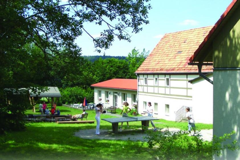 Wunderbar im Grünen gelegenes Haus, unweit von Pirna. Freundlich und zweckmäßig eingerichtete Zimmer. Großer Outdoorbereich mit Fußball- u. Beachvolleyballfeld, Grill- und Lagerfeuerplatz und einem schönen Naturteich. Regionale Küche. Vielfältige Gruppenprogramme.