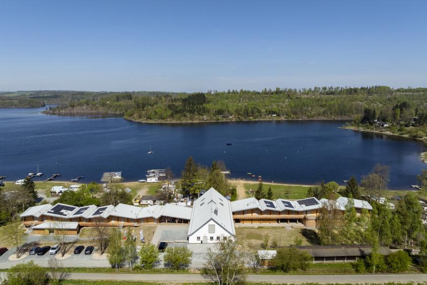 Raus aus der Komfortzone. Erleben, Bewegen, Lernen & Begegnen im SEZ Kloster, direkt am Ufer der Bleilochtalsperre, Deutschlands größtem Stausees. Bootshaus, Hausboot und Zeltplatz. Erlebnispädagogische und sportliche Programme. Lagerfeuer, Beachvolleyball, Kajaks uvm.