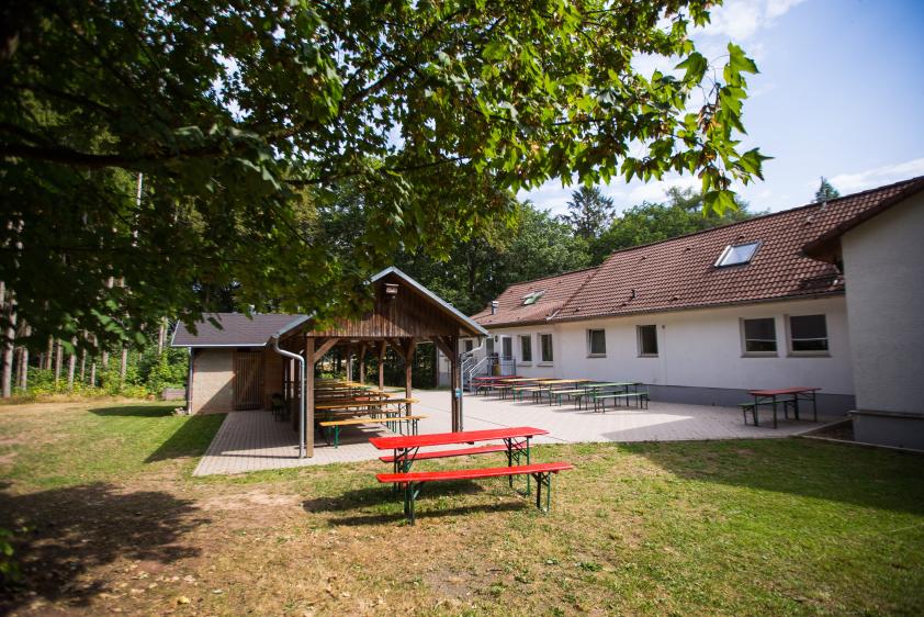 Gruppengästehaus/Seminarhaus am Wald mit zahlreichen Freizeitmöglichkeiten. Ruhig und doch zentral nahe der Städte Jena, Pößneck und Saalfeld gelegen. Freizeitgelände mit Lagerfeuerstellen, Basketballkorb, Volleyballnetz. Sinnespfad, Freizeiträume mit Billard, Tischtennis, Kicker