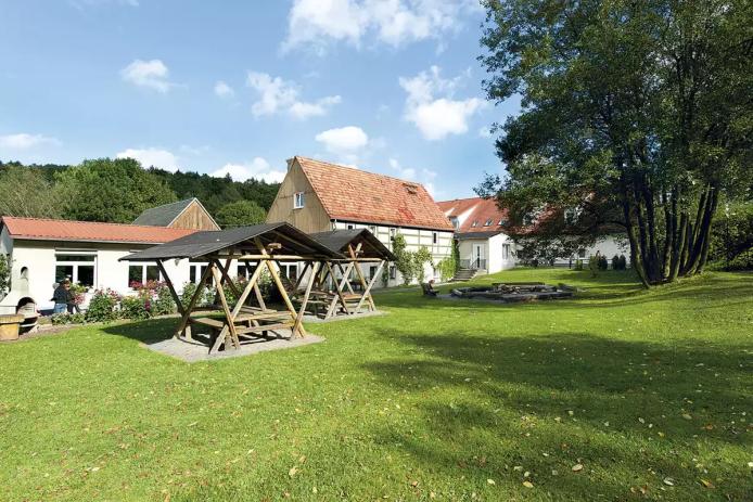 Wunderbar im Grünen gelegenes Haus, unweit von Pirna. Freundlich und zweckmäßig eingerichtete Zimmer. Großer Outdoorbereich mit Fußball- u. Beachvolleyballfeld, Grill- und Lagerfeuerplatz und einem schönen Naturteich. Regionale Küche. Vielfältige Gruppenprogramme.