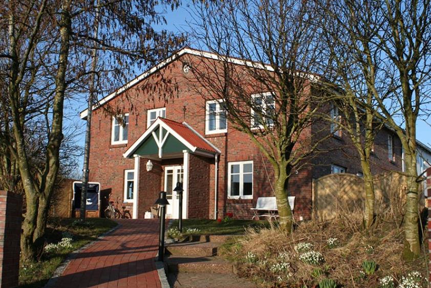 Großzügiges Selbstversorgerhaus im Nordseebad Nessmersiel, vor einem Deich, in verkehrsberuhigter Zone, ca. 20 Geh-Minuten vom Nordseestrand entfernt. 11 Schlafzimmer, Großer Aufenthaltsraum, Große Küche