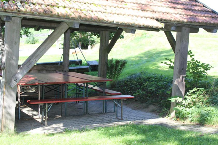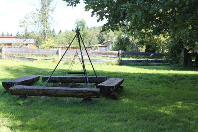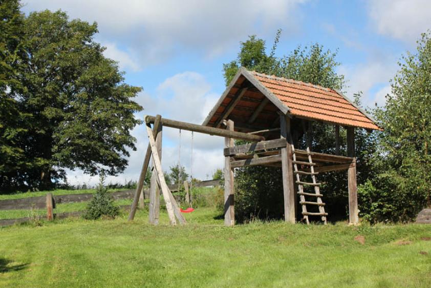 2 ha großes Grundstück mit Spielplatz, Grillplatz, zwei Gartenlauben und eine Liegewiese zum Relaxen. Barierefrei.